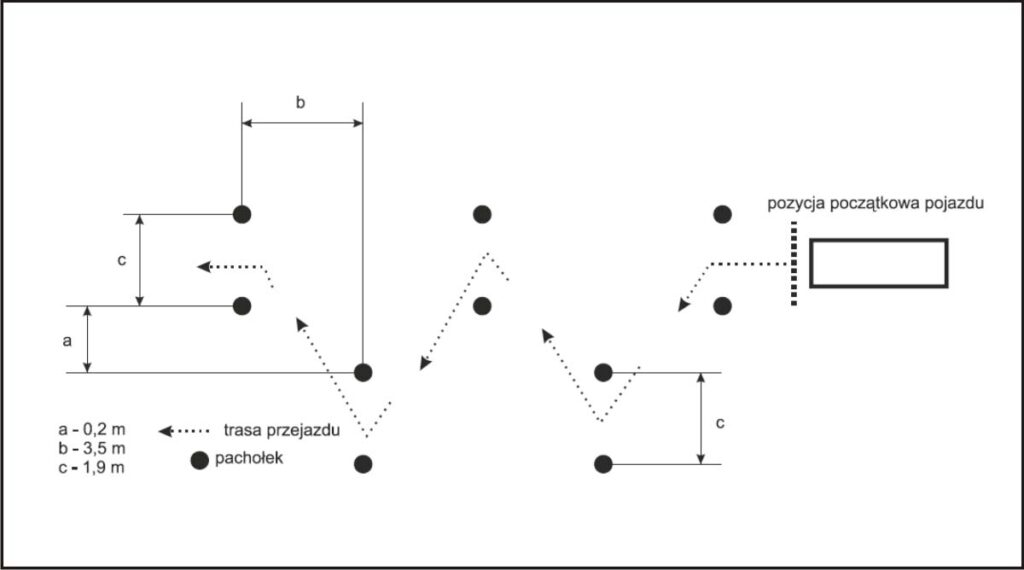 2) 2-krotny przejazd pasem ruchu, na którym jest ustawiona przeszkoda;
